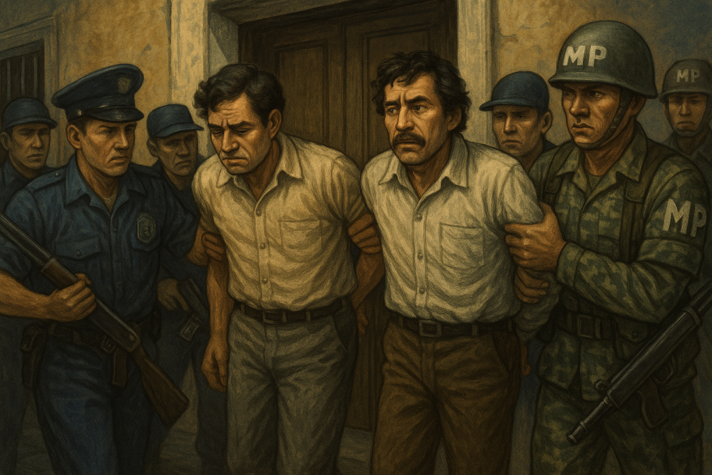 Estas personas llevaban dos detenidos que iban esposados y custodiados, los cuales fueron ingresados por el comandante Pedro a los preventivos sin autorización del comandante Gutiérrez Corro, quien estaba de guardia en ese momento. De inmediato el comandante Corro se levantó de su lugar, se dirigió hacia los separos y le exigió al comandante Pedro el oficio para meter a los detenidos; sin embargo, éste último le contestó que era orden del Procurador.